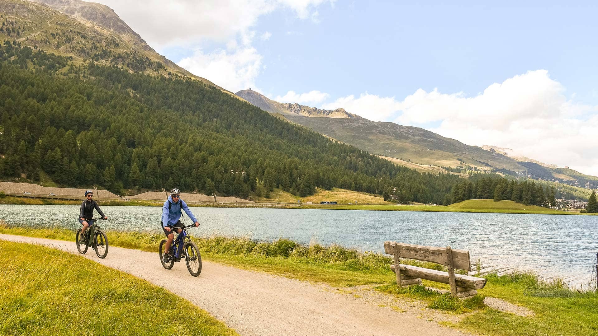 Ob mit E-Bike oder Mountainbike – im Engadin erwarten Sie über 400 Kilometer abwechslungsreiche Strecken, von adrenalingeladenen Höhenwegen bis zu entspannten Flowtrails am Corviglia. Für jeden Fahrstil ist etwas dabei.